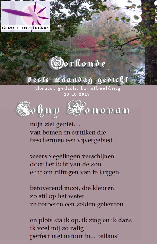 | Dikke Proficiat Johny, welverdiend met dit mooie herfstgedicht, een mooie oorkonde dik en dubbel waard. Mooie avond. Anneke |