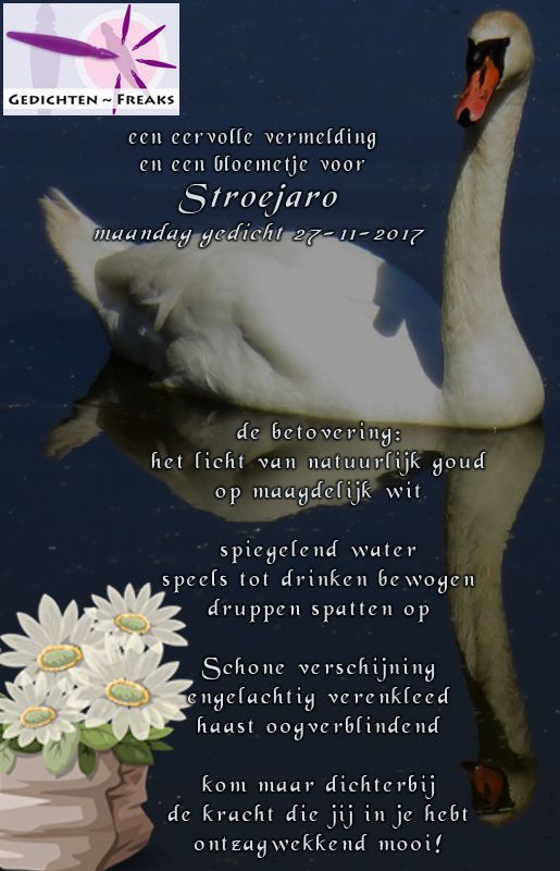 | Van harte gefeliciteerd met de welverdiende mooie eervolle vermelding en het bloemetje voor dit prachtige gedicht Stroejaro. | |