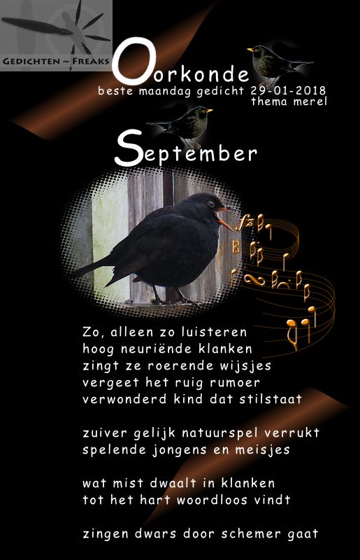 | Proficiat September met de oorkonde voor je mooie gedicht, met recht verdiend. Fijne avond wens ik je. Anneke |