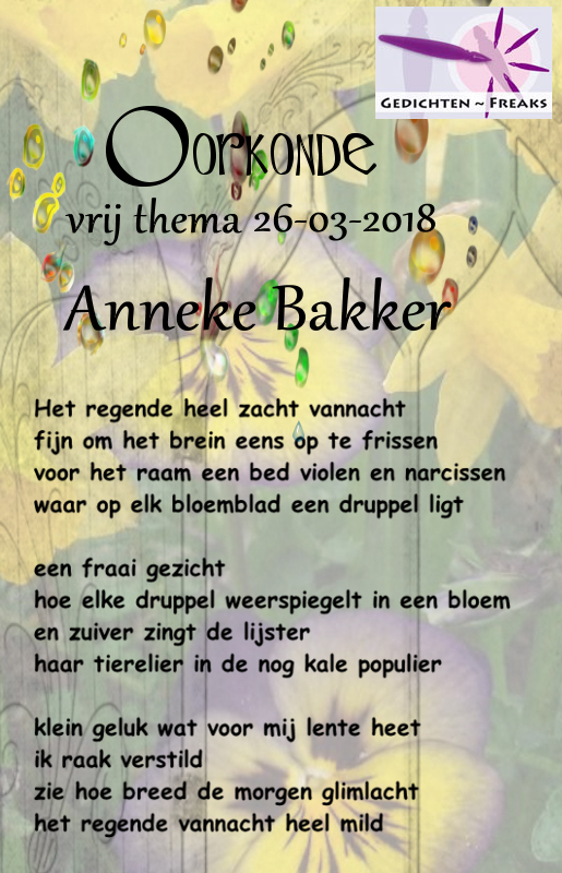 | Anneke Bakker: | Donderdag, maart 29, 2018 07:05 |