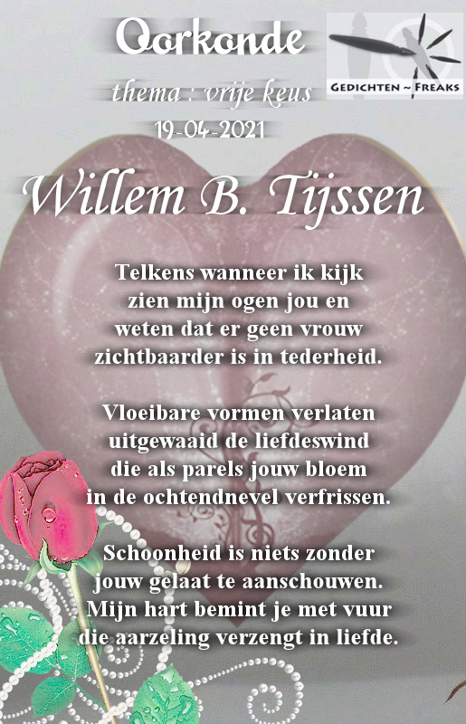 | Proficiat Willem, welverdiend met je mooie gedicht. Anneke |