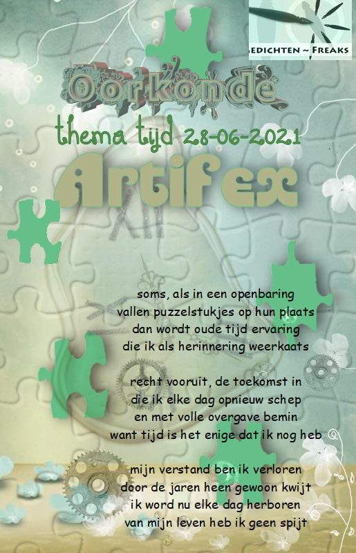 | Wel Gefeliciteerd Artifex met deze fraaie oorkonde voor je bijzonder mooie gedicht. Anneke |